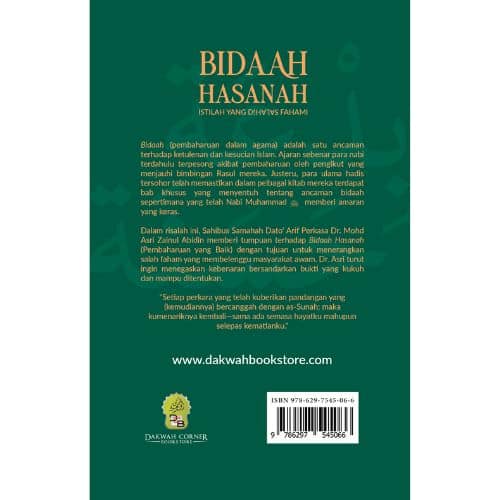 Dalam risalah ini, Sahibus Samahah Dato’ Arif Perkasa Dr. Mohd Asri Zainul Abidin memberi tumpuan terhadap Bidaah Hasanah (Pembaharuan yang Baik) dengan tujuan untuk menerangkan salah faham yang membelenggu masyarakat awam. Dr. Asri turut ingin menegaskan kebenaran bersandarkan bukti yang kukuh dan mampu ditentukan.